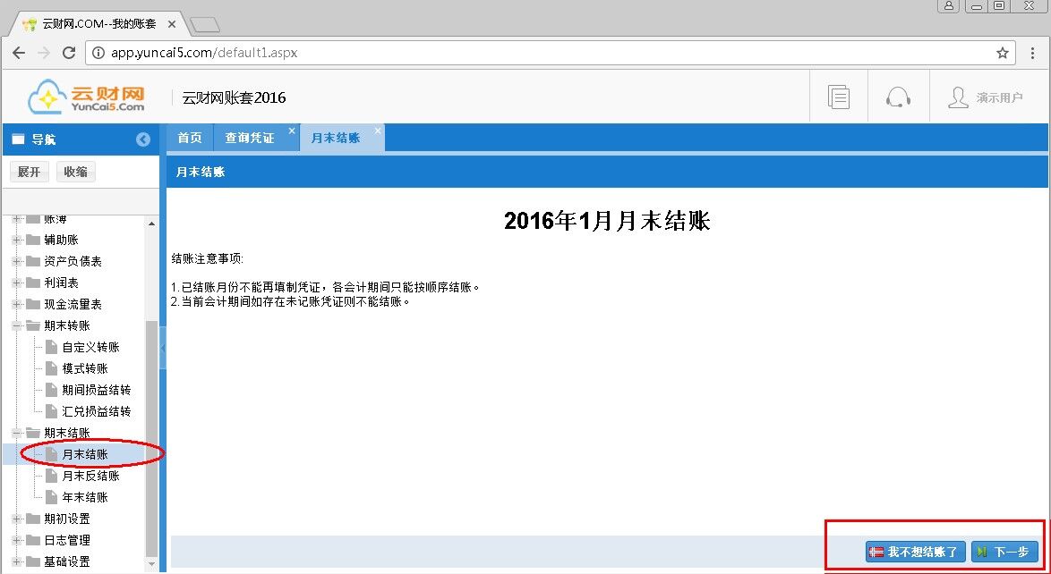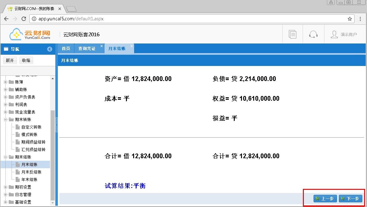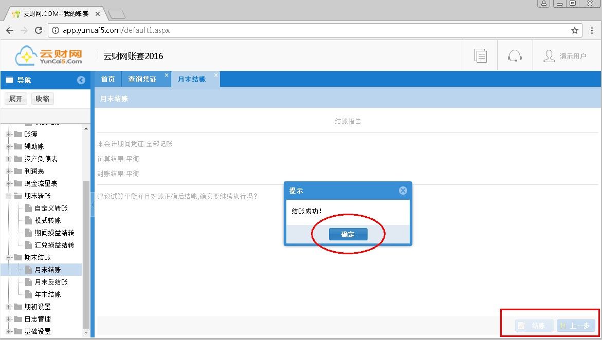 【年度结转】:年末结账后,即可返回工作台 → 账套维护 → 年度结转。年度结转后,打开新年度账套即可开始新的一年。